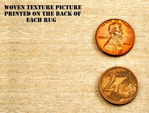 - Woven rug texture pictured on the back of each rug.