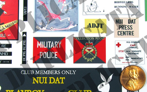 - Largest sign (Nui Dat Playboy Club) measures approx 4 1/8" x 1" (10.5 x 2.5 cm)