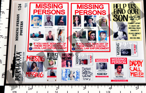 Modern Missing Person Posters - 1/24 Scale (2 sheets)