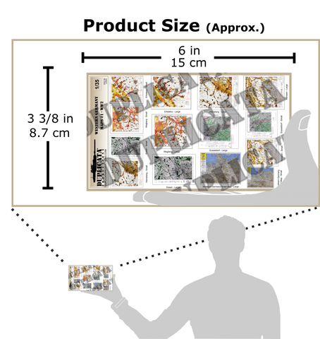 - Large maps measure approx.1 1/4 x 1" (3.3 x 2.4 cm), small maps 1 x 5/8" (2.4 x 1.2 cm).